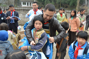 12月3日,天蒙蒙亮全体捐助代表们就开始忙碌,整理全部的捐助物资,向兴田小学行进,由于学校地处贵州偏远山区,路十分难走,在泥泞的乡间小路上,时而车子艰难行进在泥水路上,时而人们走下车子,在乡间中穿行。佛山荣高慈善基金会一行10余人,从贵阳出发,历经6个多小时,将价值十万余元的教学物资亲自送到千里乌蒙高原毕节市的大方县羊场镇兴田村兴田小学。