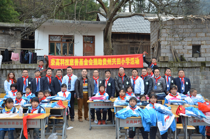 佛山市荣高科技慈善基金会捐助代表和荣高贵阳分公司全体成员不远万里来到兴田小学、本着服务社会的优良美德,立足于扶贫和社会公益事业,一切为了受助者,脚踏实地,专注做我们力所能及的事情,为我们中国贫困地区经济及社会事业的发展尽绵薄之力,同时也为了体现我们公司人本主义的管理理念,弘扬以人为本的企业文化精神,帮扶贫困、 共促事业发展的爱心平台。