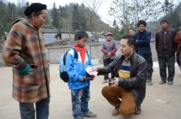 捐助现场,有一个孤独而贫困的孩子,他是兴田小学3年级学生谭本贵。小本贵从小父母离异,只有爷爷、奶奶照顾他。