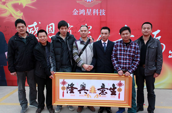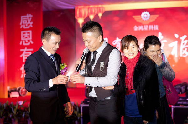 本次晚会以“感恩、幸福”为主题,金鸿星金董在晚会致辞上一连说了五个感谢,他说,“我们要感谢领导,是你们正确的指导和扶持,才使得公司茁壮成长;我们要感谢供应商,是你们为公司提供了优质完美的配套产品,才保证了公司每一件成品零缺陷的交付给用户;我们要感谢代理商,是你们不辞辛劳的战斗在市场第一线,才保证了公司业绩的稳步增长;我们要感谢同行,是你们的进步才使公司在众多品牌中脱颖而出;我们要感谢员工,是每一位金鸿星人用你们辛劳的汗水和聪明的智慧,才保证了每一位用户的需求。”一气呵成,发至肺腑的一席话,提前掀起了晚会的高潮。紧接着一曲热情奔放风情四射的《草裙舞》把现场观众带入到热带雨林,感受一股股热浪袭来。晚会特邀cctv星光大道栏目明星郑军为晚会献曲。会后员工直言,郑军的《怒放的生命》唱到我们的心坎里了,非常感动。