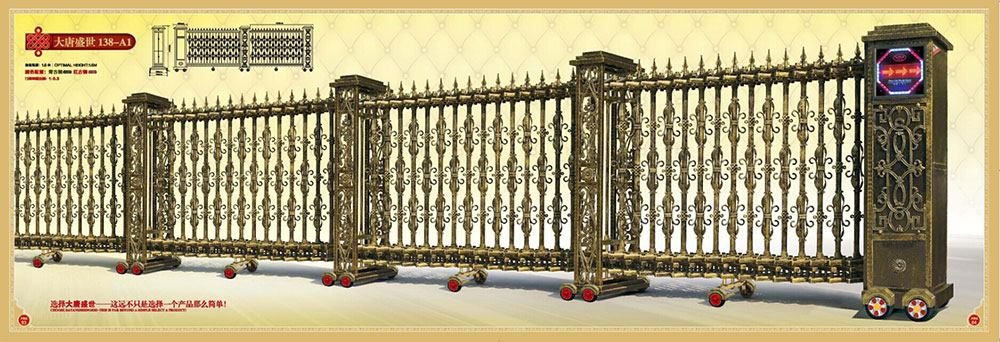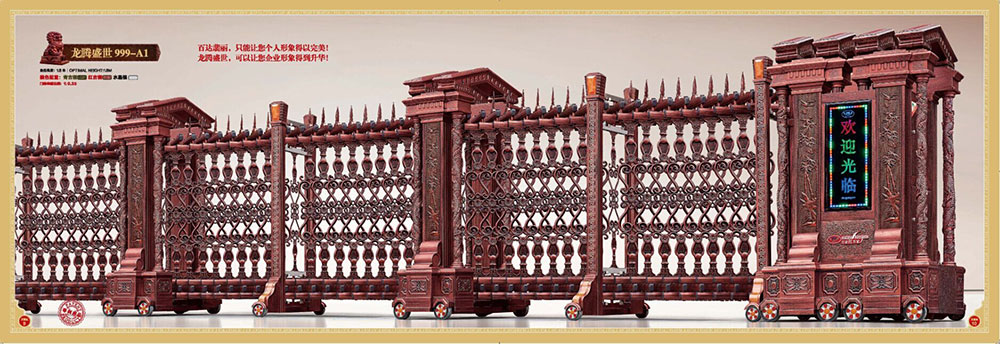 万家红门业自创立以来,一直坚持按市场和用户的需求做好新产品的研发,每年都有新产品问世,2008年金字塔系列门,2009年庆丰门系列,2010年运势如宏系列,2011祥瑞系列,2012年大唐盛世系列,2013年盛世至尊系列,2014年龙腾盛世系列,2015年卫士系列等。其中12年的大唐盛世系列,是我们重金邀请了国内知名风水大师参与设计,是中国首款古典式豪华铸铝别墅伸缩大门。大唐盛世系列产品精准的市场定位和深厚文化内涵获得了市场广泛认可,取得了巨大成功,成为行业的“爆款”,加上此后两年的升级版:盛世至尊系列和龙腾盛世系列,“爆款”产品连续大卖了三年,万家红门业不但抵挡了行业寒气,更是完成了跨越式发展。