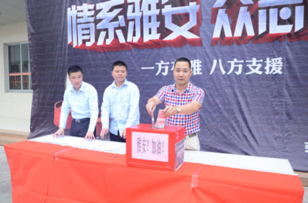 全体荣高家人积极行动起来,发扬人道主义精神,献出一片真情,使此次地震灾区的同胞能多一份温暖、少一份痛苦。让我们共同努力,帮助地震灾区同胞渡过难关,您的爱心捐款数额,无论多少都体现能你的情意,你的爱心捐助数额,我们将在企业文化宣传版中给予公布。全体荣高家人们,让我们的大爱持续传递,将您的爱心传递给最需要帮助的雅安同胞。在这一刻我们都是雅安人,一起加油。
