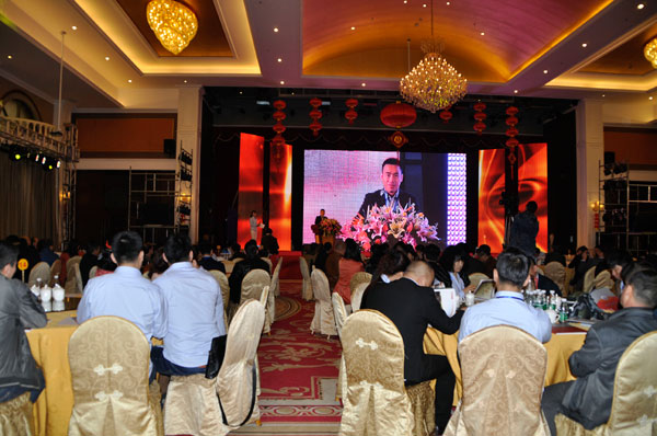 公司董事长金国建先生在会上致辞。他代表金鸿星全体员工真诚欢迎和感谢全国经销商朋友在百忙之中莅临本次会议,同时强调说金鸿星能够在竞争越来越激烈、宏观环境不景气的市场环境下,仍能取得优异成绩,与一直以来支持信赖金鸿星的经销商朋友们是分不开的,是大家的努力和成绩才让企业十多年的发展走得如此充实和稳健,给了金鸿星继续前行的强大动力。随后,公司高层与全体经销商就金鸿星公司未来的品牌发展和2014年的营销进行深入的交流和讨论。并在营销专家的指导下共同确立了新一年的营销战略。