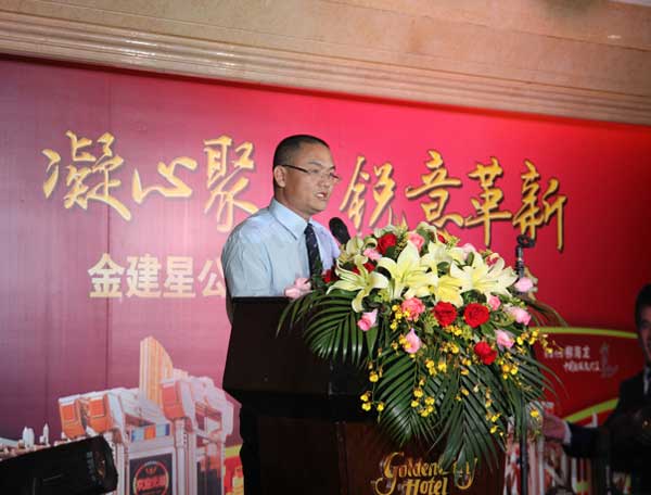 本次会议由区总致欢迎辞拉开序幕,紧接着,建星公司董事长黄锦山先生在大会致辞。他代表建星全体员工真诚欢迎全国经销商朋友回家,黄董表示建星能够在行业竞争如此激烈的市场环境下,获得如此优异成绩,与一直以来支持信赖建星的经销商朋友们是分不开的,是大家的努力和成绩才让建星有了今天的辉煌,给了建星继续前行的强大动力。