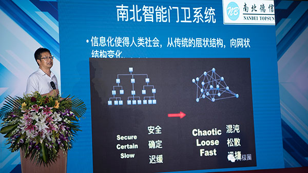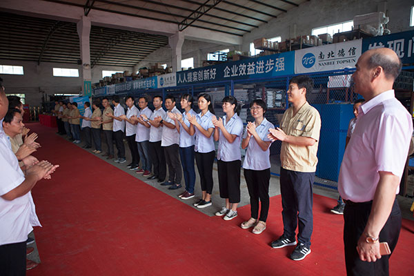 南北门业公司董事长霍志文率南北总公司、南北智控装备事业部、南北铝艺事业部、南北标准制造事业部等全体南北人列队欢迎行业领导和专家们的光临指导并致欢迎词。